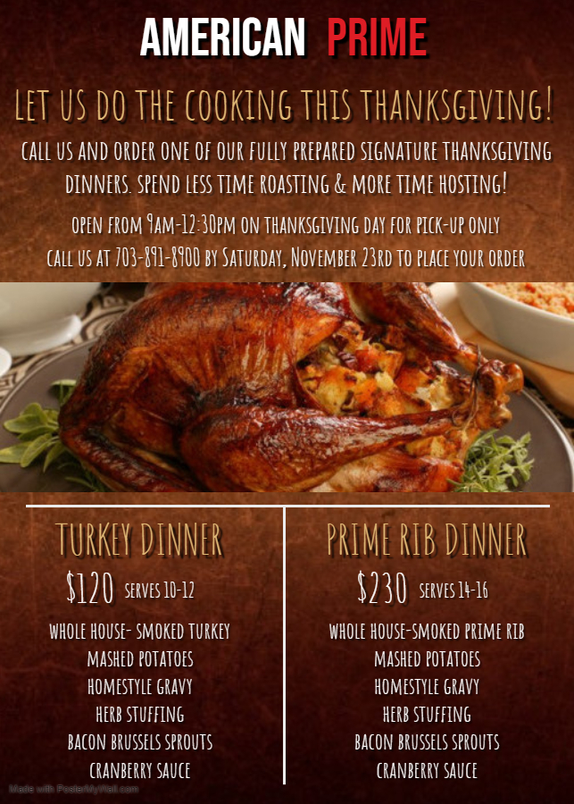 Turkey or Prime rib? Either way let us prepare thanksgiving for you.